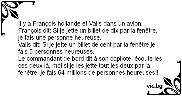 Le commandant de bord dit à son copilote: écoute les ces deux là, moi si je les jette tout les deux par la fenêtre, je fais 64 millions de personnes heureuses!!