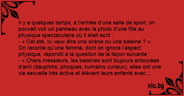 Il y a quelques temps, à l’entrée d’une salle de sport, on pouvait voir un panneau avec la photo d’une fille au physique spectaculaire où il était écrit :