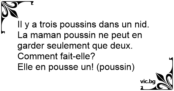Il y a trois poussins dans un nid. La maman poussin ne peut en garder seulement que deux. Comment fait-elle?