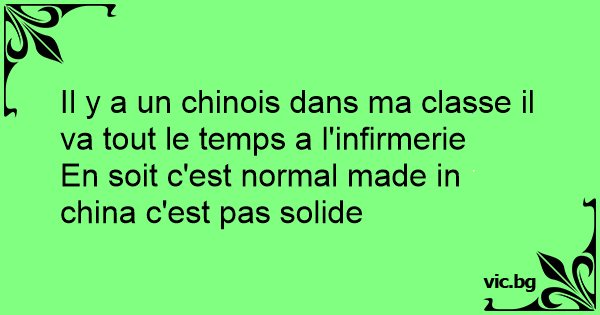 Il y a un chinois dans ma classe il va tout le temps a l'infirmerie