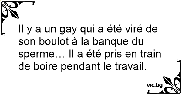 Il y a un gаy qui a été viré de son boulot à la banque du sperme… Il a été pris en train de boire pendant le travail.