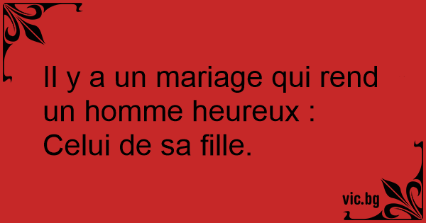 Il y a un mariage qui rend un homme heureux :