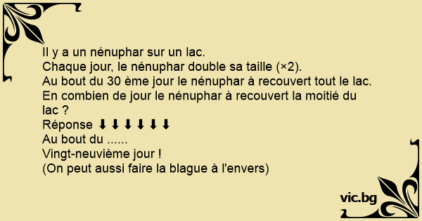 Chaque jour, le nénuphar double sa taille (×2).