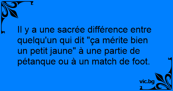 Il y a une sacrée différence entre quelqu'un qui dit "ça mérite bien un petit jaune" à une partie de pétanque ou à un match de foot.