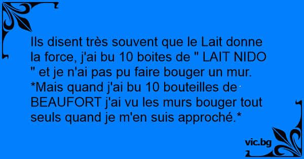 Ils disent très souvent que le Lait donne la force, j'ai bu 10 boites de " LAIT NIDO " et je n'ai pas pu faire bouger un mur.