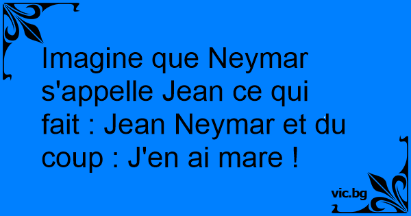 Imagine que Neymar s'appelle Jean ce qui fait : Jean Neymar et du coup : J'en ai mare !