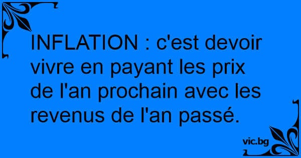 INFLATION : c'est devoir vivre en payant les prix de l'an prochain avec les revenus de l'an passé.