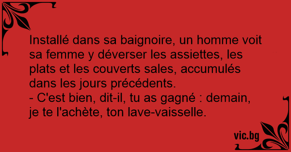 - C'est bien, dit-il, tu as gagné : demain, je te l'achète, ton lave-vaisselle.