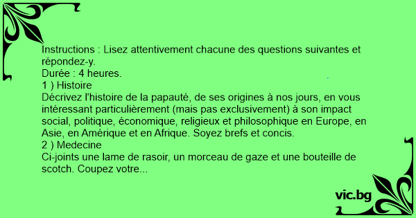 Instructions : Lisez attentivement chacune des questions suivantes et répondez-y.