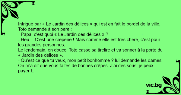 Intrigué par « Le Jardin des délices » qui est en fait le bordel de la ville, Toto demande à son père :