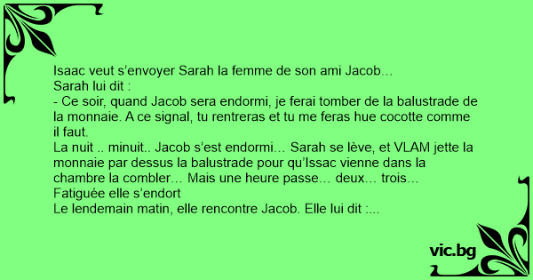 Isaac veut s’envoyer Sarah la femme de son ami Jacob…