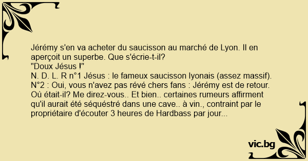 Jérémy s'en va acheter du saucisson au marché de Lyon. Il en aperçoit un superbe. Que s'écrie-t-il?
