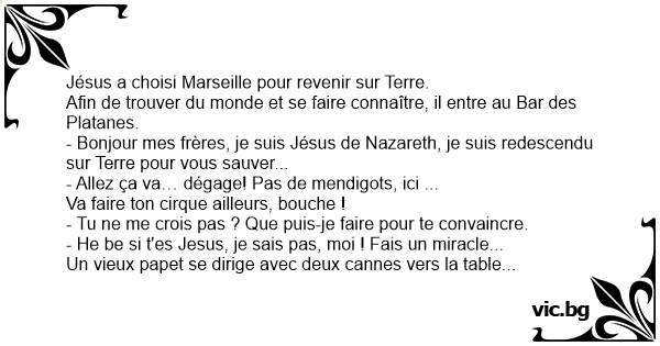 - Bonjour mes frères, je suis Jésus de Nazareth, je suis redescendu sur Terre pour vous sauver...