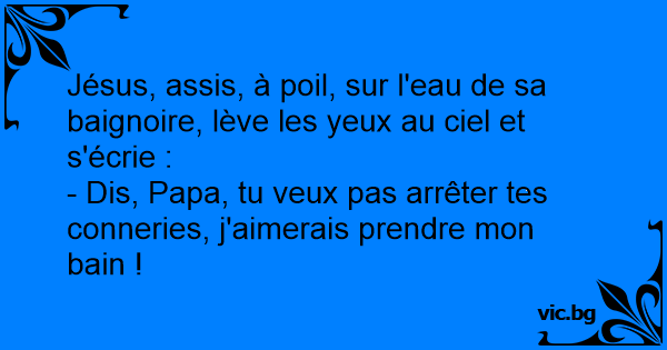 Jésus, assis, à poil, sur l'eau de sa baignoire, lève les yeux au ciel et s'écrie :