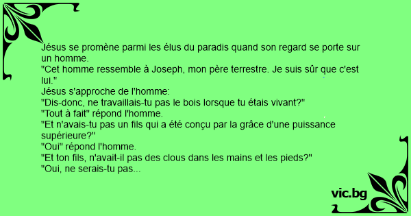 "Dis-donc, ne travaillais-tu pas le bois lorsque tu étais vivant?"