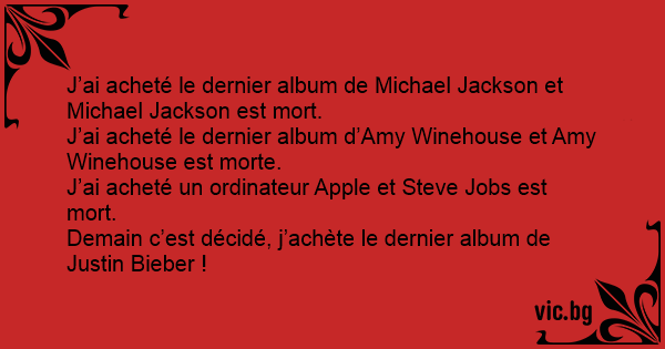 J’ai acheté le dernier album de Michael Jackson et Michael Jackson est mort.