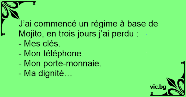 J’ai commencé un régime à base de Mojito, en trois jours j’ai perdu :