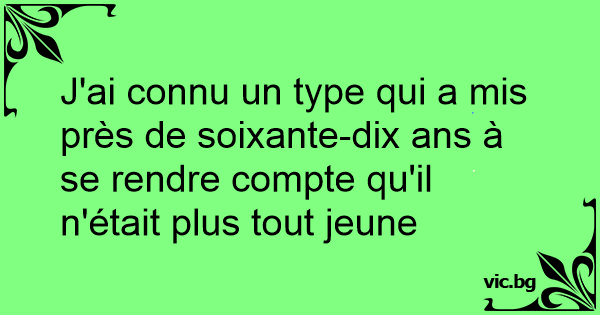J'ai connu un type qui a mis près de soixante-dix ans à se rendre compte qu'il n'était plus tout jeune