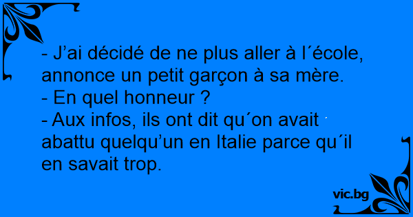 - J’ai décidé de ne plus aller à l´école, annonce un petit garçon à sa mère.
