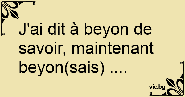 J'ai dit à beyon de savoir, maintenant beyon(sais) ....