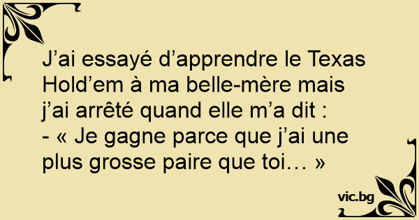 J’ai essayé d’apprendre le Texas Hold’em à ma belle-mère mais j’ai arrêté quand elle m’a dit :