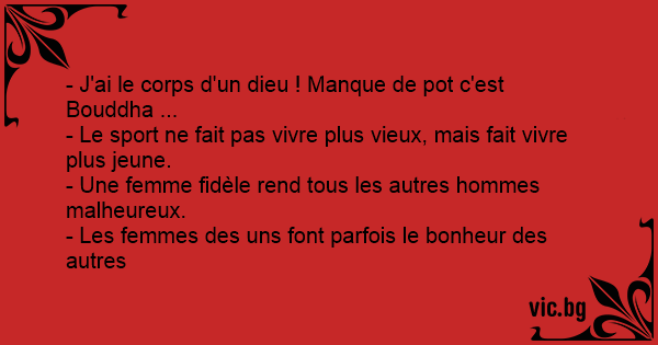 - J'ai le corps d'un dieu ! Manque de рот c'est Bouddha ...