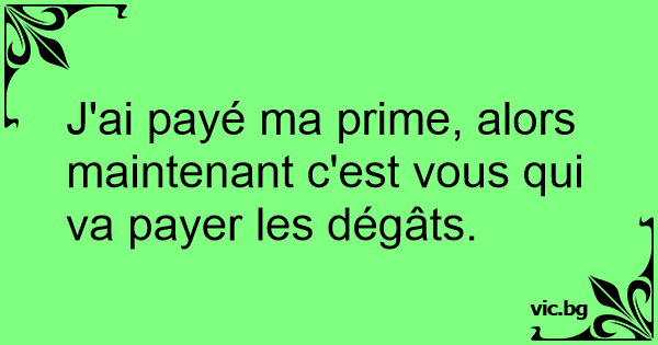 J'ai payé ma prime, alors maintenant c'est vous qui va payer les dégâts.