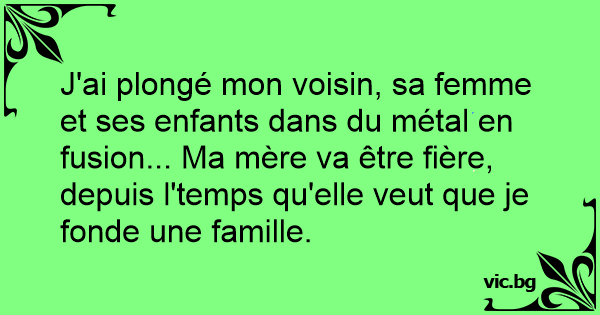 J'ai plongé mon voisin, sa femme et ses enfants dans du métal en fusion... Ma mère va être fière, depuis l'temps qu'elle veut que je fonde une famille.