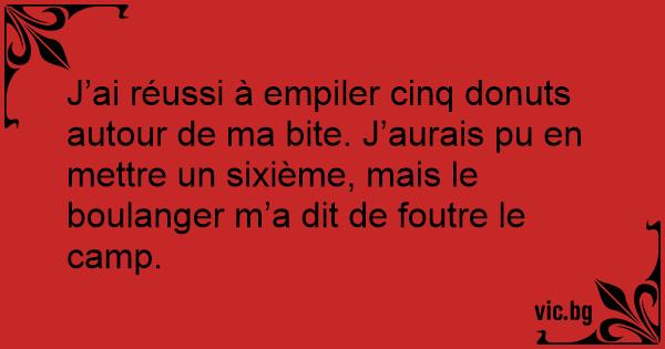 J’ai réussi à empiler cinq donuts autour de ma bite. J’aurais pu en mettre un sixième, mais le boulanger m’a dit de foutre le camp.