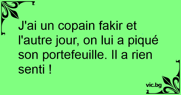 J'ai un copain fakir et l'autre jour, on lui a piqué son portefeuille. Il a rien senti !