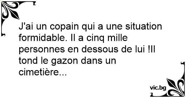 J'ai un copain qui a une situation formidable. Il a cinq mille personnes en dessous de lui !Il tond le gazon dans un cimetière...