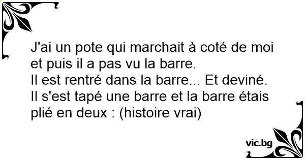 J'ai un pote qui marchait à coté de moi et puis il a pas vu la barre.