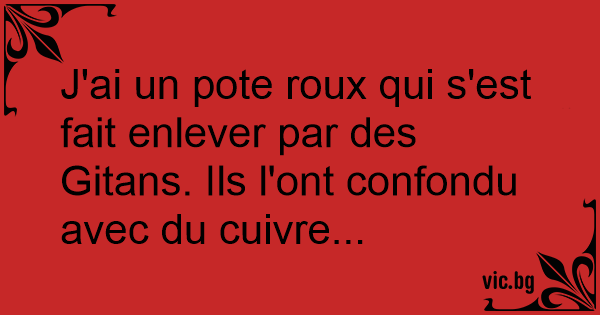 J'ai un pote roux qui s'est fait enlever par des Gitans. Ils l'ont confondu avec du cuivre...