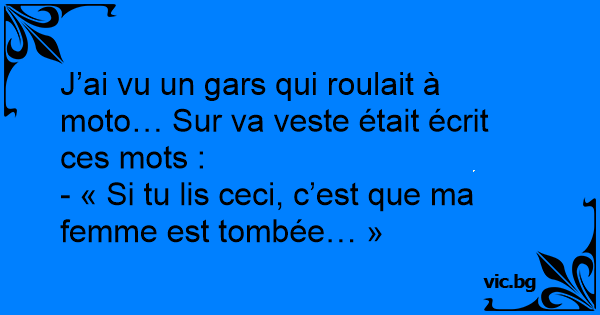 J’ai vu un gars qui roulait à moto… Sur va veste était écrit ces mots :