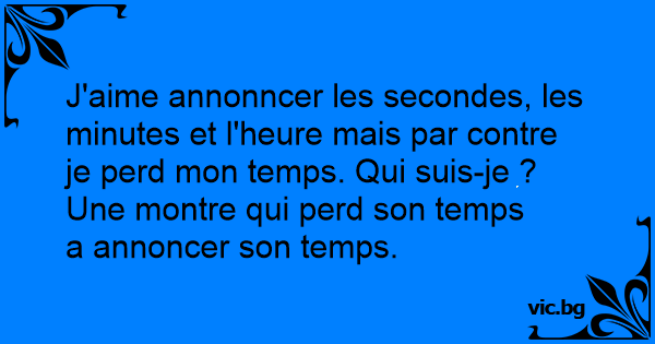 J'aime annonncer les secondes, les minutes et l'heure mais par contre je perd mon temps. Qui suis-je ?
