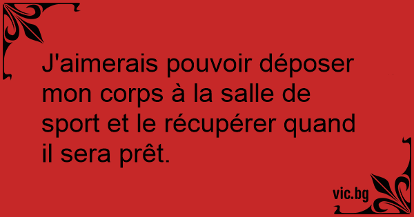 J'aimerais pouvoir déposer mon corps à la salle de sport et le récupérer quand il sera prêt.