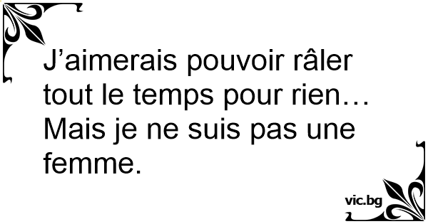 J’aimerais pouvoir râler tout le temps pour rien… Mais je ne suis pas une femme.