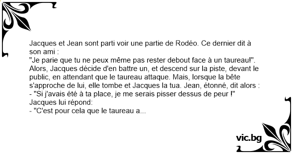 Jacques et Jean sont parti voir une partie de Rodéo. Ce dernier dit à son ami :