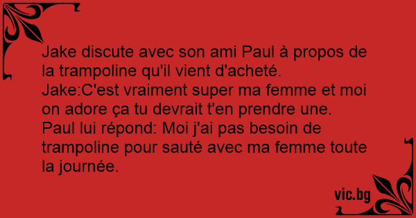 Paul lui répond: Moi j'ai pas besoin de trampoline pour sauté avec ma femme toute la journée.