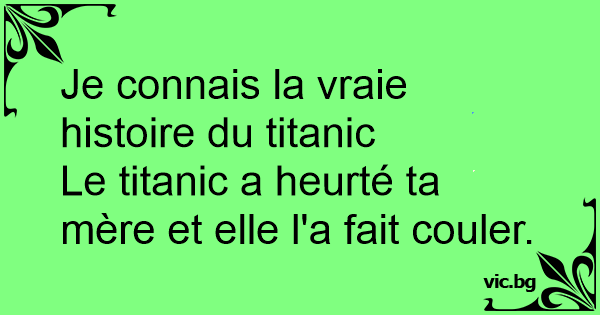 Le titanic a heurté ta mère et elle l'a fait couler.