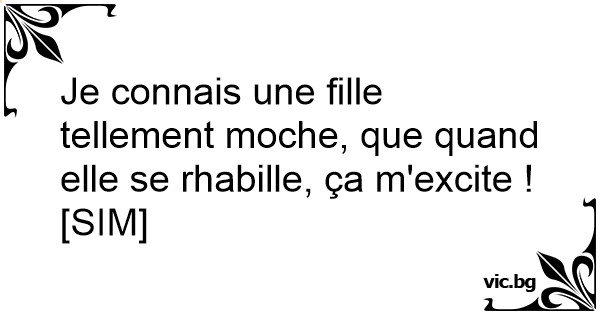 Je connais une fille tellement moche, que quand elle se rhabille, ça m'excite !