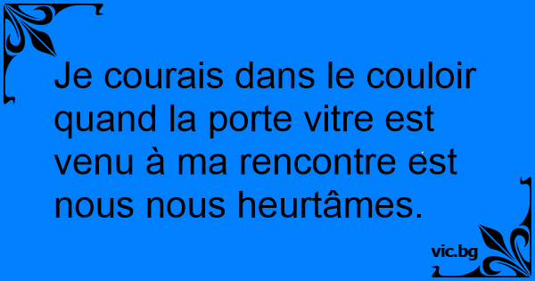 Je courais dans le couloir quand la porte vitre est venu à ma rencontre est nous nous heurtâmes.