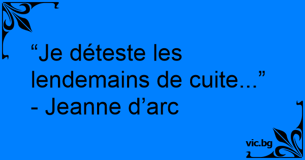 “Je déteste les lendemains de cuite...” - Jeanne d’arc