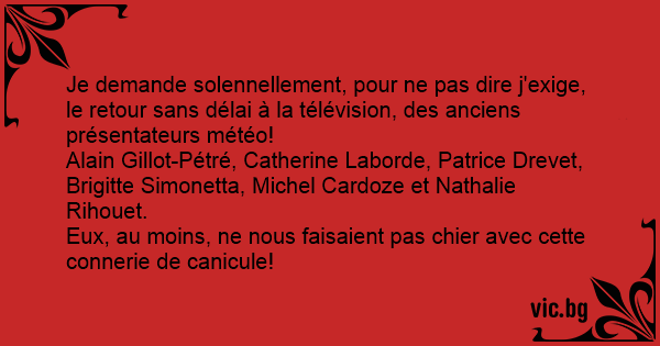 Je demande solennellement, pour ne pas dire j'exige, le retour sans délai à la télévision, des anciens présentateurs météo!