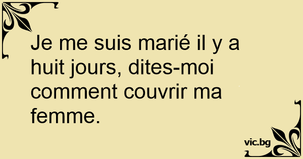 Je me suis marié il y a huit jours, dites-moi comment couvrir ma femme.