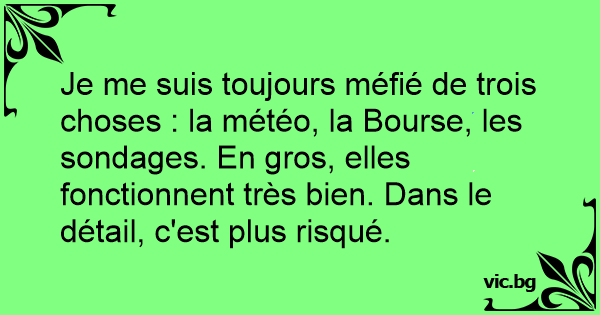 Je me suis toujours méfié de trois choses : la météo, la Bourse, les sondages. En gros, elles fonctionnent très bien. Dans le détail, c'est plus risqué.