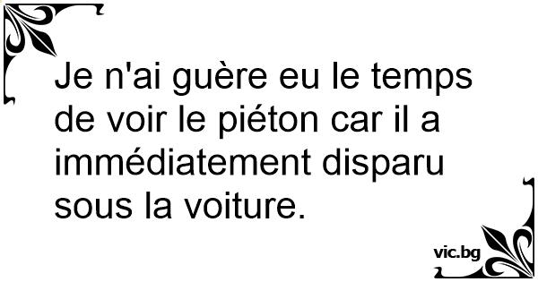 Je n'ai guère eu le temps de voir le piéton car il a immédiatement disparu sous la voiture.