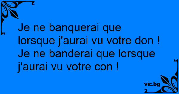 Je ne banquerai que lorsque j'aurai vu votre don !