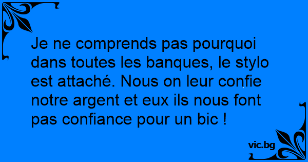 Je ne comprends pas pourquoi dans toutes les banques, le stylo est attaché. Nous on leur confie notre argent et eux ils nous font pas confiance pour un bic !