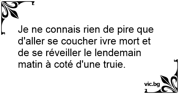 Je ne connais rien de pire que d'aller se coucher ivre mort et de se réveiller le lendemain matin à coté d'une truie.